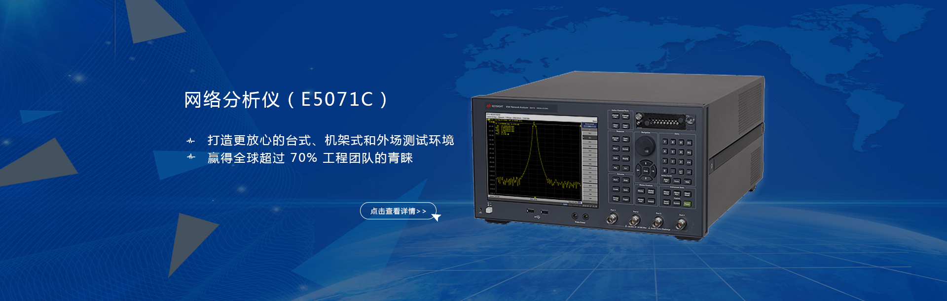 主要產(chǎn)品有:頻譜分析儀,網(wǎng)絡(luò)分析儀,綜合測(cè)試儀,藍(lán)牙wifi測(cè)試儀,噪聲系數(shù)測(cè)試儀,接收機(jī),電話測(cè)試儀,高、低頻信號(hào)源,音、視頻信號(hào)分析儀,高精度萬(wàn)用表, LCR/ 電橋、各種通信電源等。經(jīng)營(yíng)的儀器品牌主要有:Keysight/Agilent (惠普 / 安捷倫)、 R/S (羅德 & 施瓦茨)、 Anritsu (安立)、Litepoint、 FLUK( 福祿克 ) 、 TEK (泰克)等。